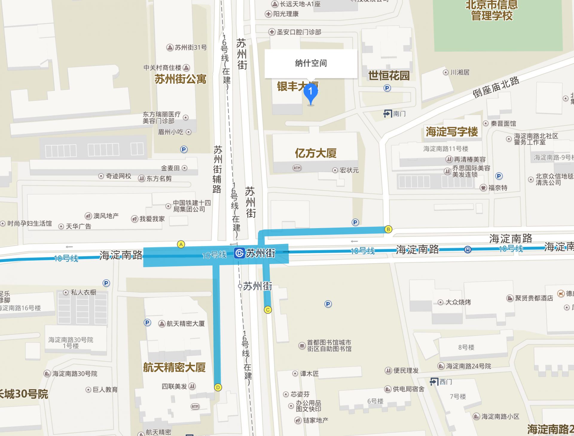 北京市海淀区苏州街20号银丰大厦3楼地铁:10号线——苏州街站A口或者B口——步行前往