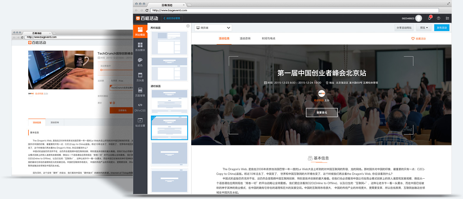 提供自助式的活动网站设计,模版的丰富,简便的操作;